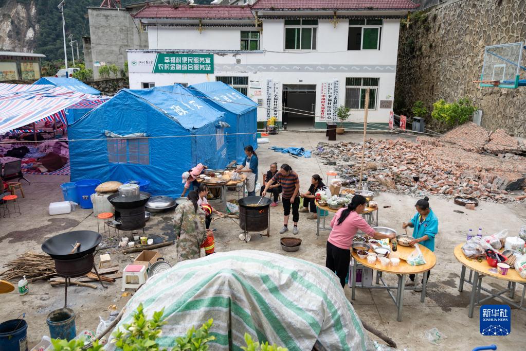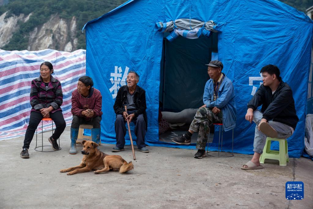 9月7日,在雅安市石棉縣王崗坪彝族藏族鄉(xiang) 幸福村二組,村民們(men) 在帳篷外休息。新華社記者 才揚 攝