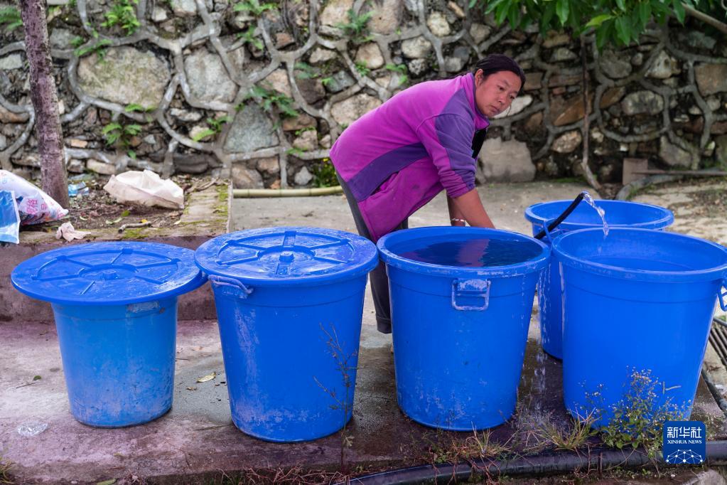 9月7日,在雅安市石棉縣王崗坪彝族藏族鄉(xiang) 幸福村二組,一名村民在接山泉水,這股山泉水是村民們(men) 從(cong) 山上引下來的。新華社記者 才揚 攝
