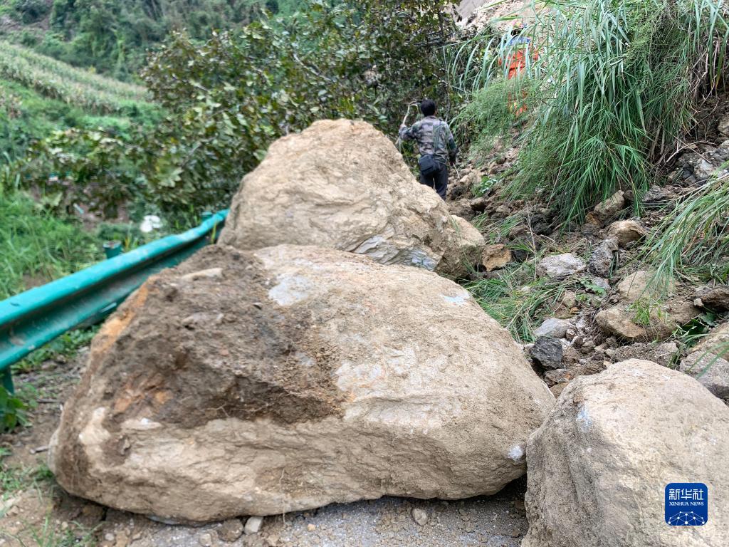 9月7日在雅安市石棉縣王崗坪彝族藏族鄉(xiang) 拍攝的損毀道路。新華社記者 才揚 攝