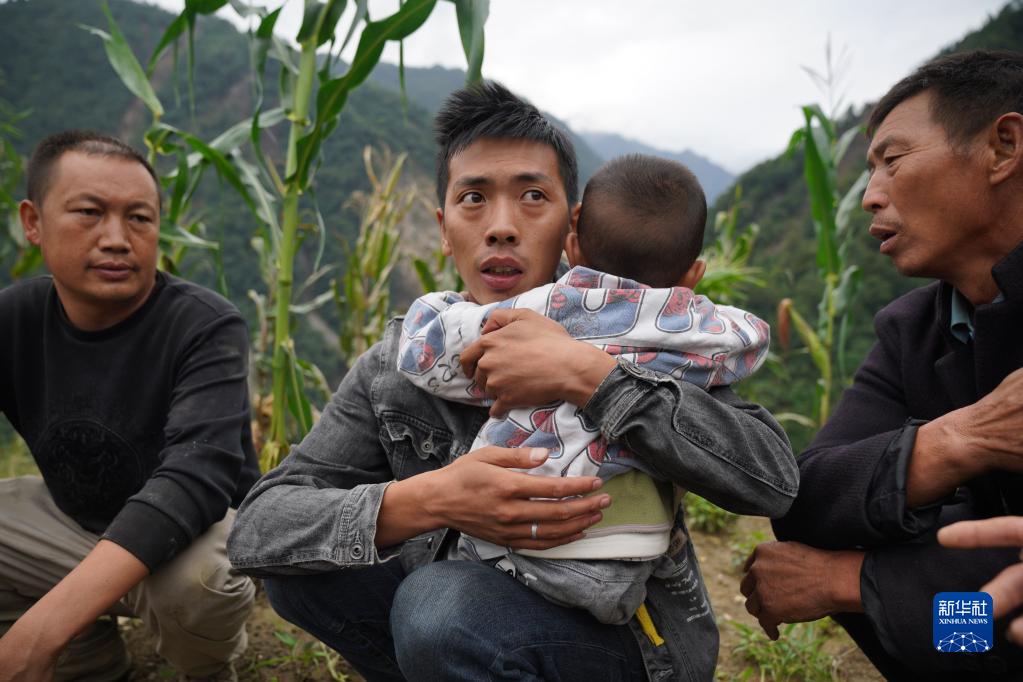 9月7日,在雅安市石棉縣王崗坪彝族藏族鄉(xiang) 幸福村二組,一名男子抱著生病的孩子準備登上直升機去縣城。新華社記者 才揚 攝