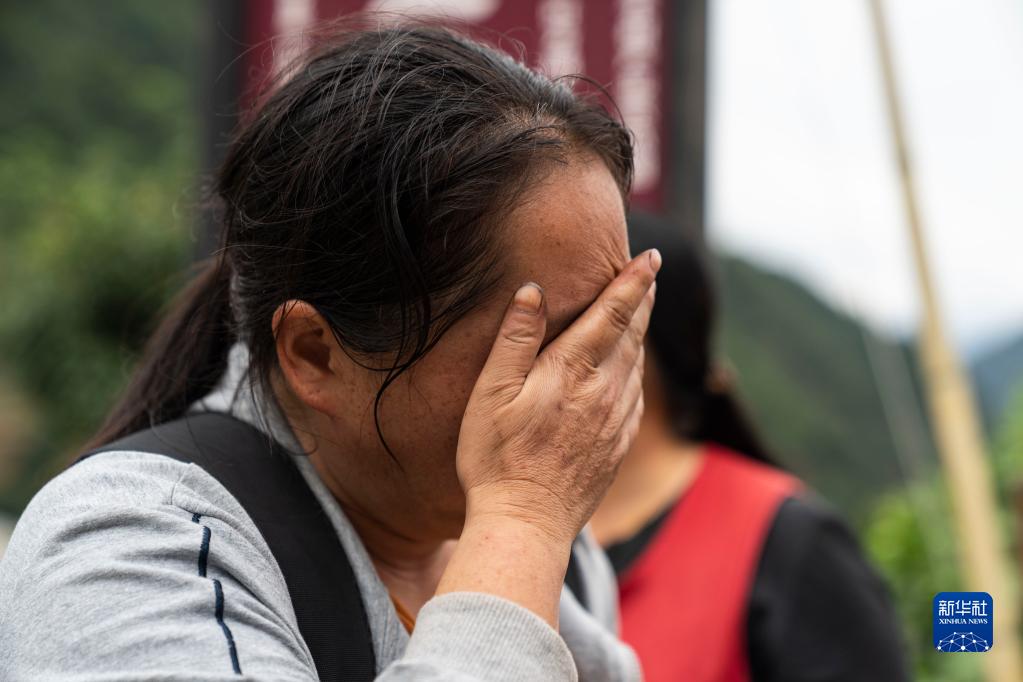9月7日,在雅安市石棉縣王崗坪彝族藏族鄉(xiang) 幸福村二組,一名村民在哭泣。新華社記者 才揚 攝