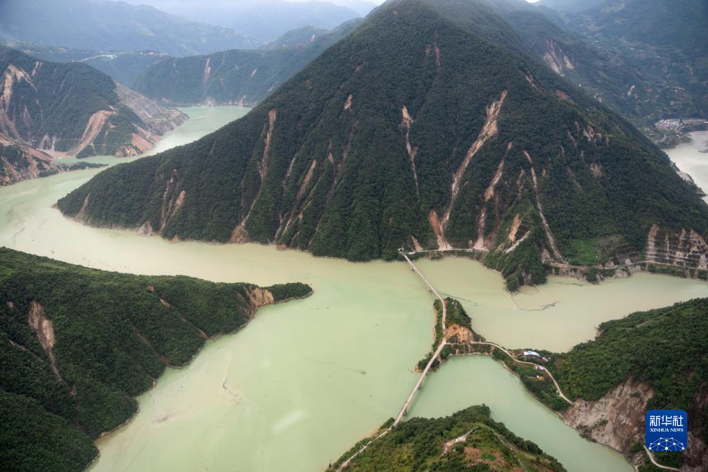 這是9月7日拍攝的雅安市石棉縣王崗坪彝族藏族鄉(xiang) 幸福村二組附近的照片,可看到山體(ti) 多處滑坡(無人機照片)。新華社記者 才揚 攝
