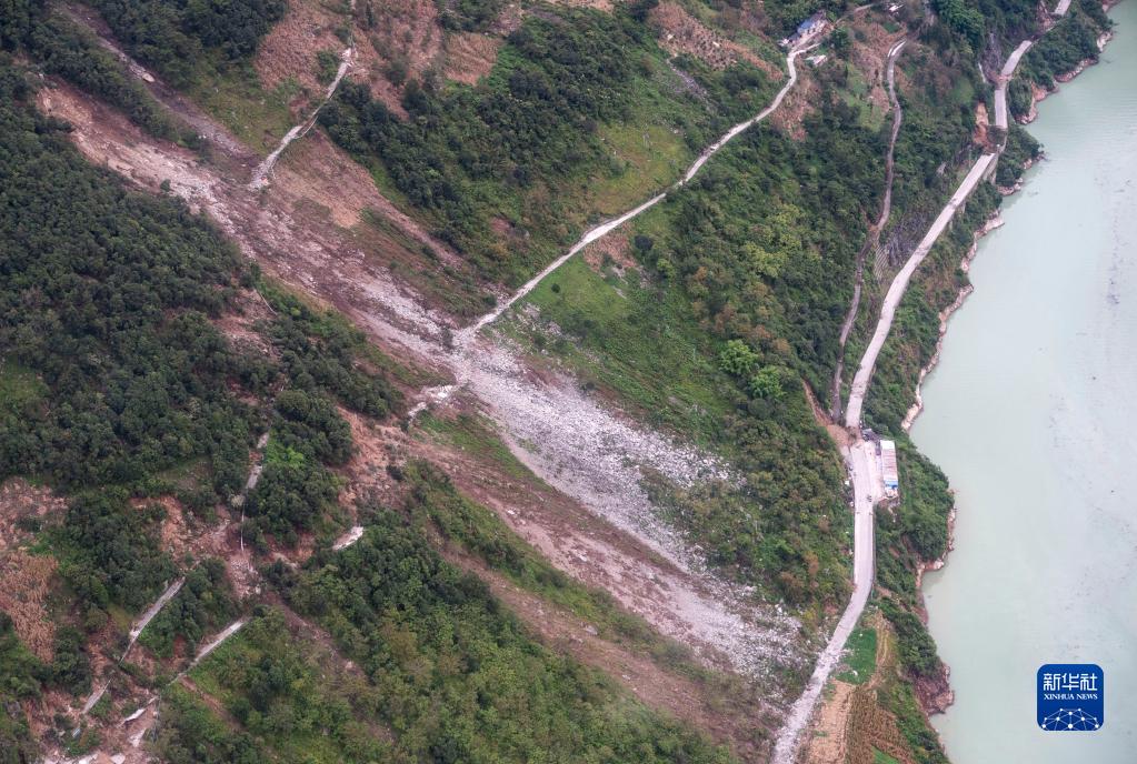 這是9月7日拍攝的雅安市石棉縣王崗坪彝族藏族鄉(xiang) 幸福村二組附近的照片,能看到山體(ti) 多處滑坡(無人機照片)。新華社記者 才揚 攝