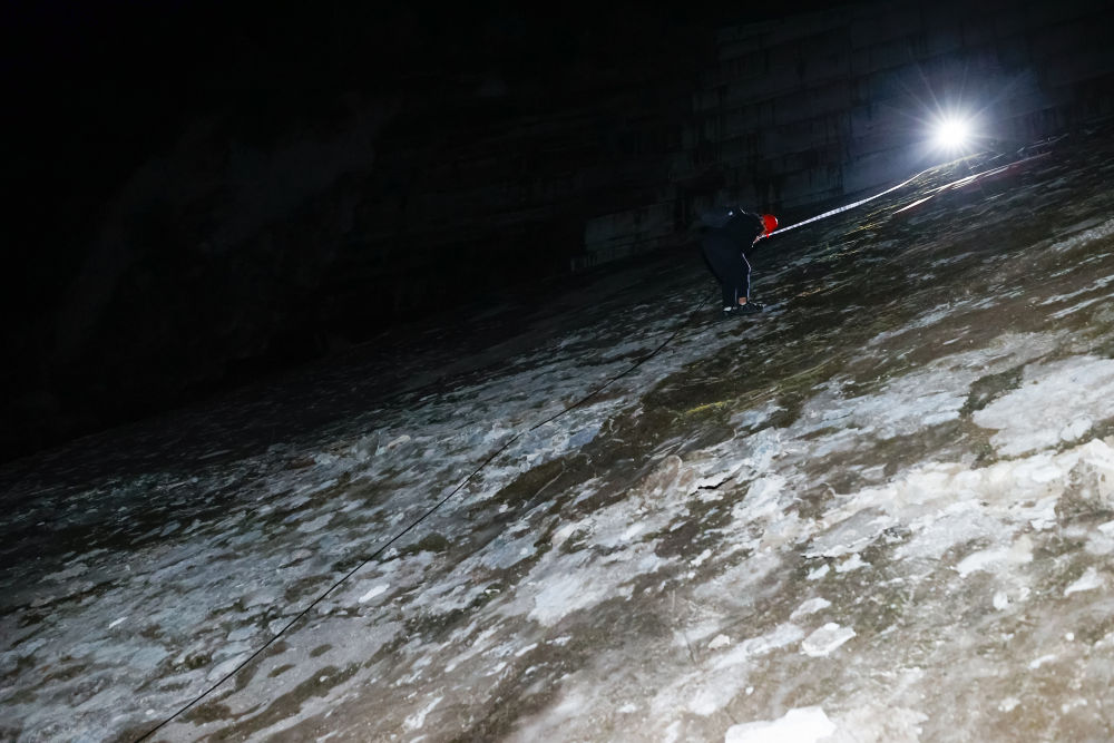 9月6日淩晨,新華社記者馮(feng) 家順抓著繩索下山。