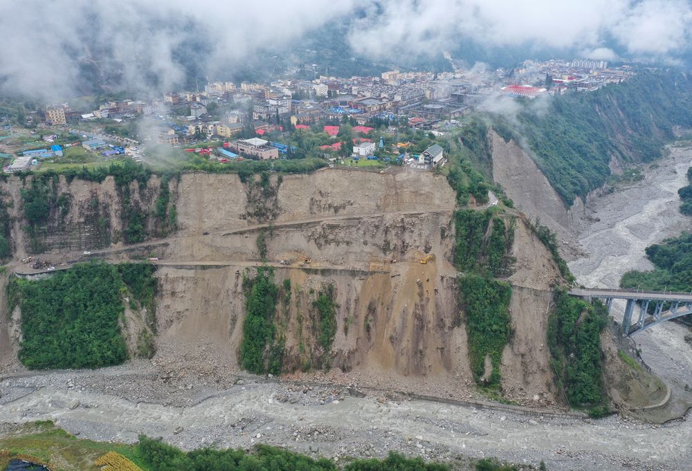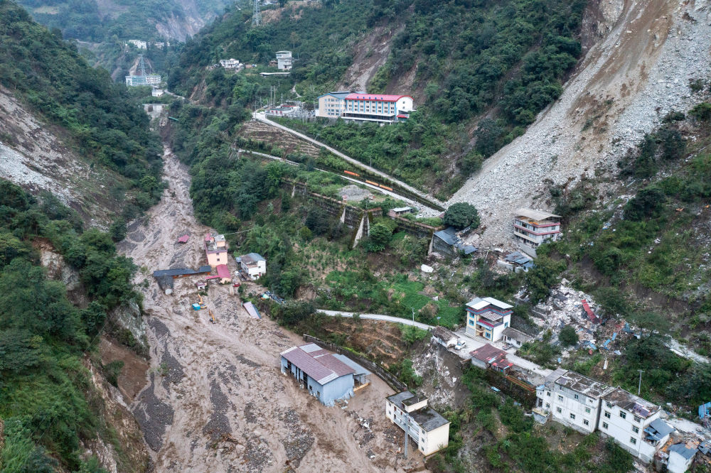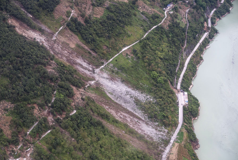 9月6日拍攝的得妥鎮附近的山穀,地震導致了山體(ti) 垮塌。