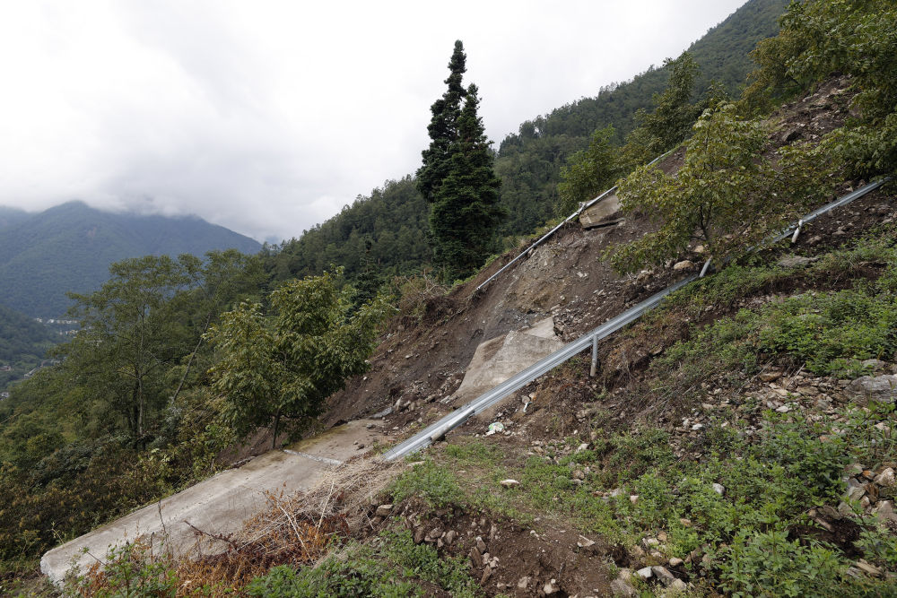 9月7日在王崗坪彝族藏族鄉(xiang) 拍攝的損毀道路。