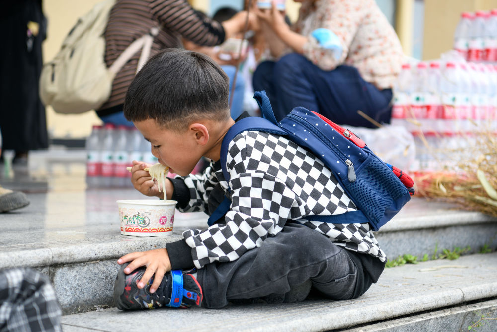 采訪當天,這個(ge) 安置點裏的夥(huo) 食團依舊承包了在場所有村民、救援人員以及采訪隊伍的午飯,大家依次排隊領取,補充體(ti) 力。一旁的草科鄉(xiang) 中心小學內(nei) ,118名孩子也享用著熱氣騰騰的午飯。