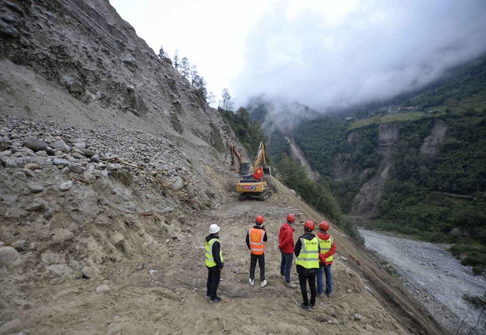 9月6日,被地震損毀的山體(ti) 還在不停落石。
