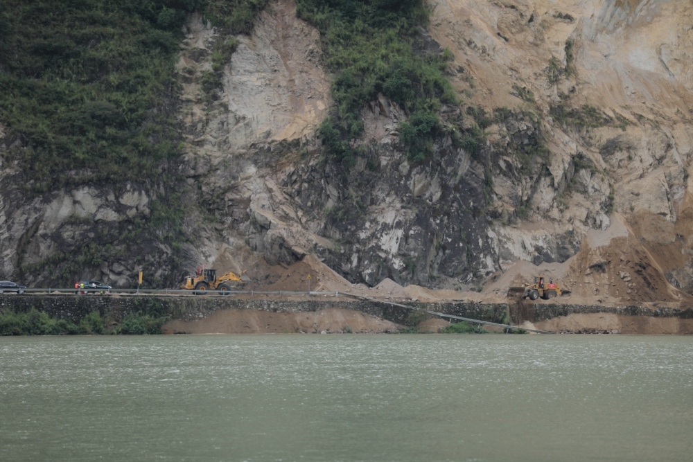 按照編輯部的報道提示,我重點關(guan) 注震中持續降雨的影響。與(yu) 交通搶險隊伍保持聯係後,我前往他們(men) 的搶險作業(ye) 麵采訪拍攝。