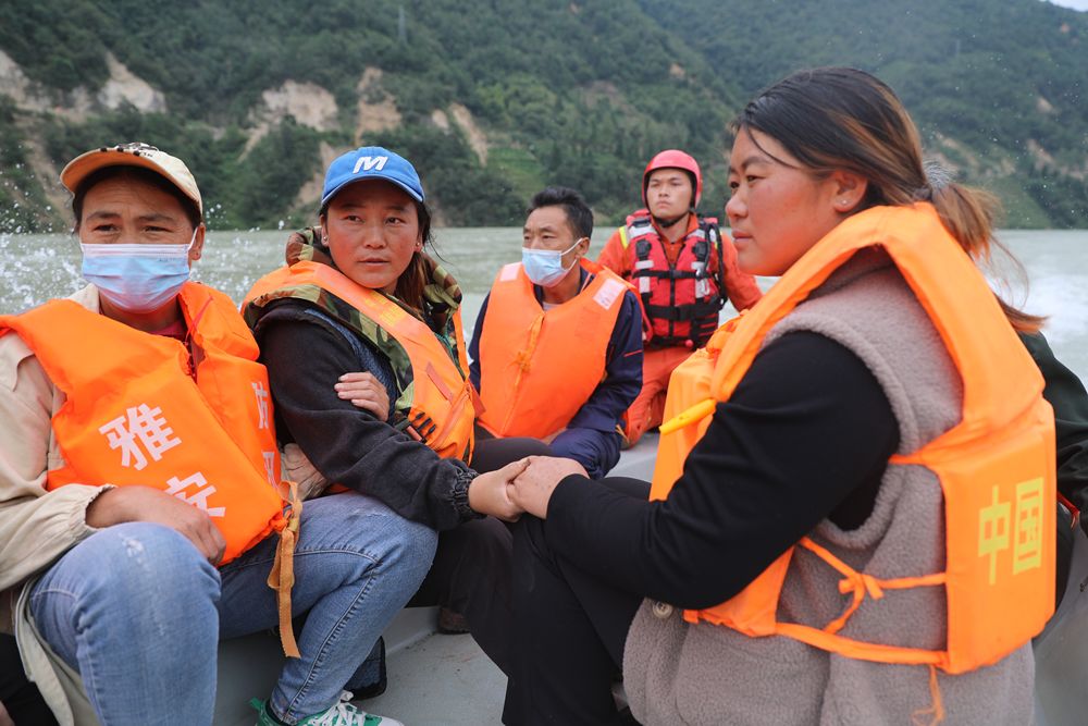 6日一早,通往王崗坪鄉(xiang) 的道路依舊未打通,我們(men) 跟隨救援人員從(cong) 新民鄉(xiang) 臨(lin) 時碼頭上船,乘坐橡皮艇沿著大渡河逆流而上。一艘艘搭載救援人員和物資的快艇從(cong) 身邊快速“飛”過,兩(liang) 岸塌方處已有搶險隊伍在搶修道路,挖掘機清理的落石落入大渡河,水花飛濺。王崗坪鄉(xiang) 的臨(lin) 時碼頭旁,是前來幫忙的村民,他們(men) 拉著繩索幫救援人員靠岸,岸上一輛輛小客車、三輪車排著隊運送救援隊伍和物資。
