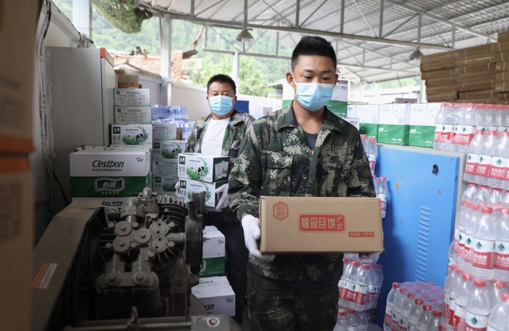 9月9日,在王崗坪鄉(xiang) 安置點,工作人員在搬運物資。
