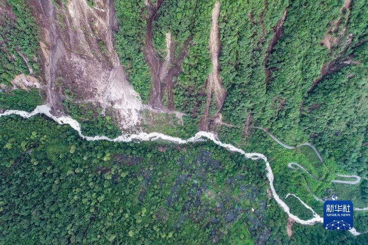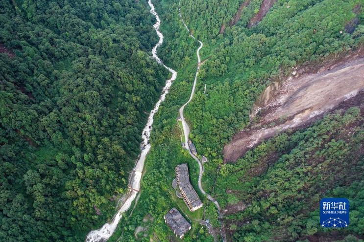 這是9月7日拍攝的海螺溝景區一號營地附近的崩塌災害現場(右側(ce) 部分)(無人機照片)。新華社發(四川省冶勘設計集團有限公司供圖)