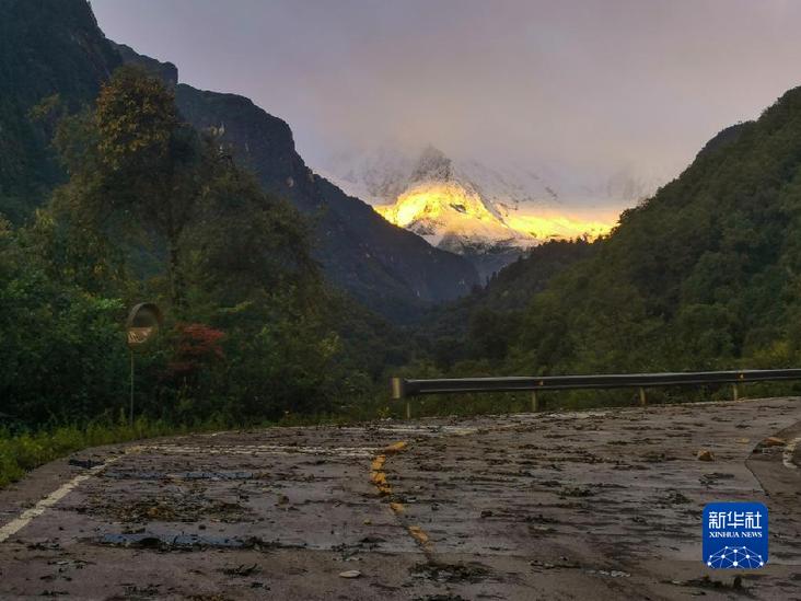 這是9月10日拍攝的海螺溝景區內(nei) 部道路和貢嘎雪山側(ce) 峰。新華社發(四川省冶勘設計集團有限公司供圖)