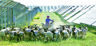 戈壁灘變身光伏牧場