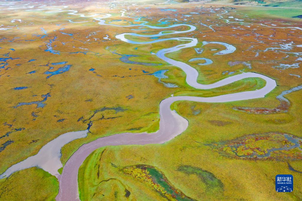 這是瑪曲縣阿萬(wan) 倉(cang) 濕地內(nei) 的河流和沼澤(9月17日攝,無人機照片)。新華社記者 郎兵兵 攝