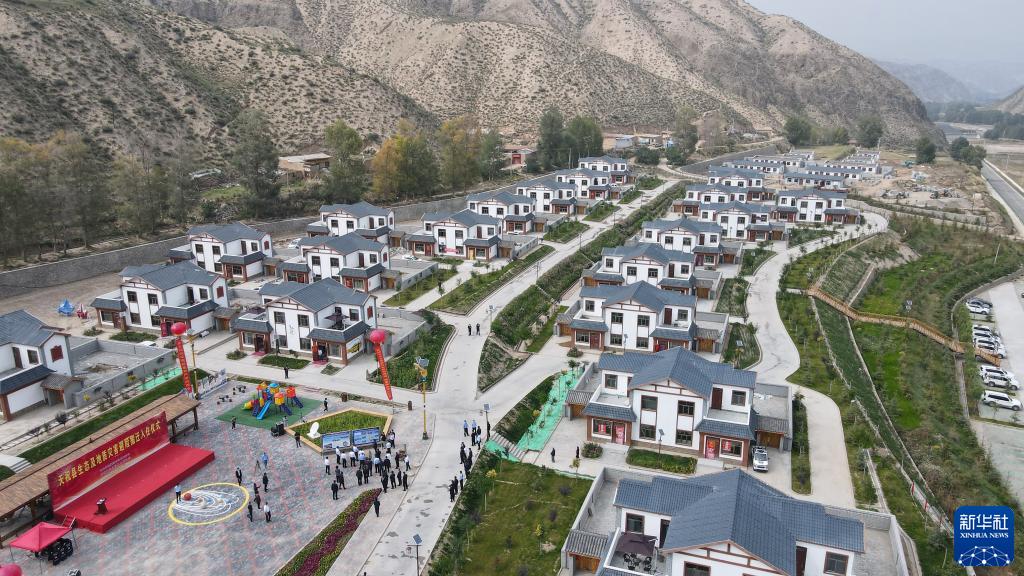 9月15日拍攝的甘肅省武威市祁連鎮祁連村下河安置點(無人機照片)。新華社記者 張智敏 攝
