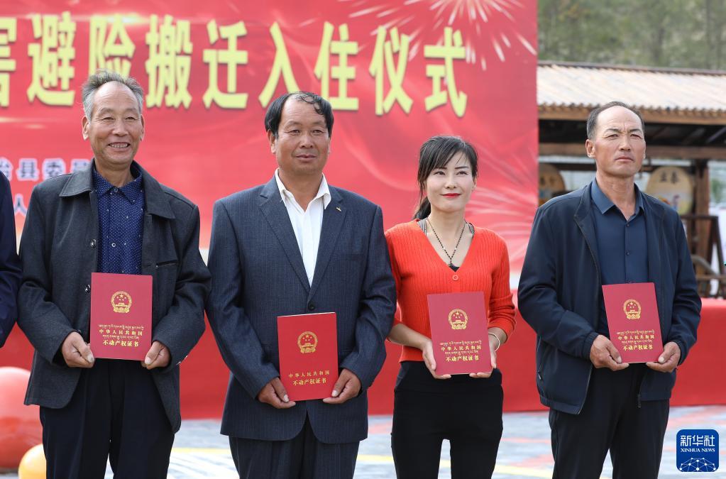 9月15日,在甘肅省武威市天祝藏族自治縣生態及地質災害避險搬遷入住儀(yi) 式上,祁連鎮116戶群眾(zhong) 拿到不動產(chan) 權證書(shu) ,入住新房。作為(wei) 生態脆弱地區,天祝縣通過生態及地質災害避險搬遷工作,嚐試解決(jue) 地質災害威脅和發展受限問題。