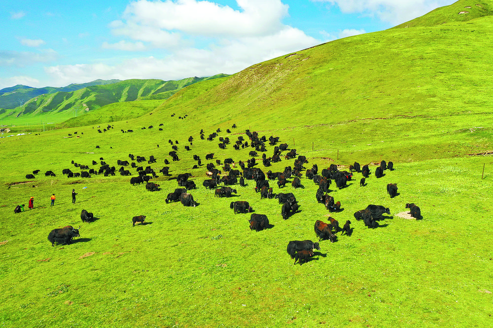 同德草原上成群的良種犛牛。洪玉傑 攝