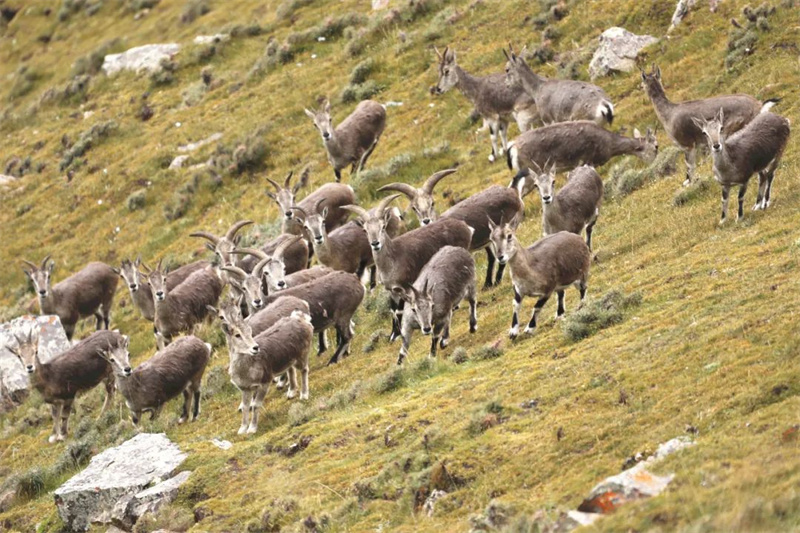 成群岩羊。江文江措 攝