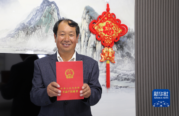 9月15日,在祁連鎮祁連村下河安置點,村民鄧發斌展示拿到的房屋不動產(chan) 權證書(shu) 。新華社記者 張智敏 攝