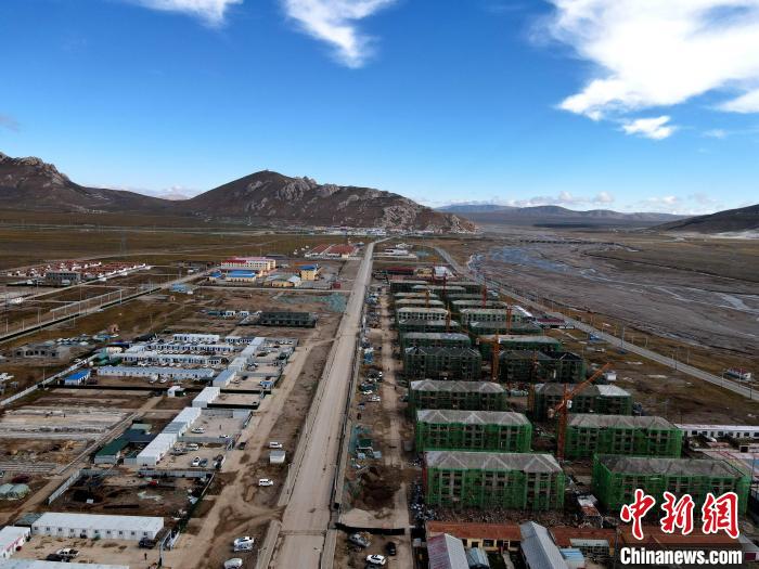 圖為(wei) 無人機航拍瑪多地震災後重建農(nong) 牧民D級住房重建項目。瑪多縣委宣傳(chuan) 部 供圖