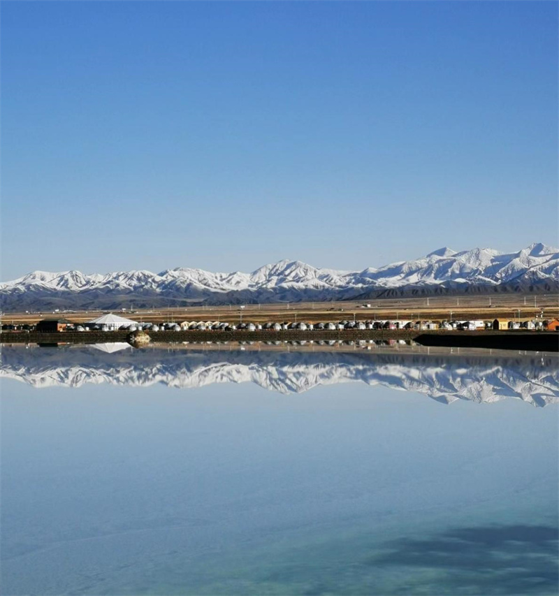 位於(yu) 青海省海西蒙古族藏族自治州烏(wu) 蘭(lan) 縣的茶卡鹽湖鹽層開始結晶,湖水逐漸純淨,平靜的湖水如同天然鏡麵,倒映著湛藍天空與(yu) 皚皚雪山,呈現出一幅別樣高原秋日美景。