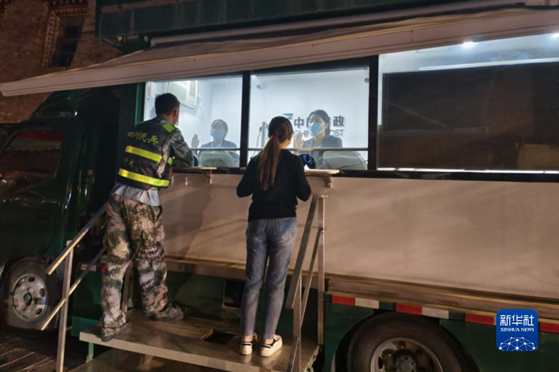 臨(lin) 時郵局的燈,照暖了災區群眾(zhong) 的心。瀘定地震發生後,甘孜州郵政分公司在震後一個(ge) 小時內(nei) ,緊急調配4輛郵車、抽調8名員工承運政府救災物資,前往震中瀘定縣磨西鎮。當天,郵政網點人員開始為(wei) 震後受災群眾(zhong) 免費提供飲用水、消毒液、口罩、常用藥品、創可貼等物資。