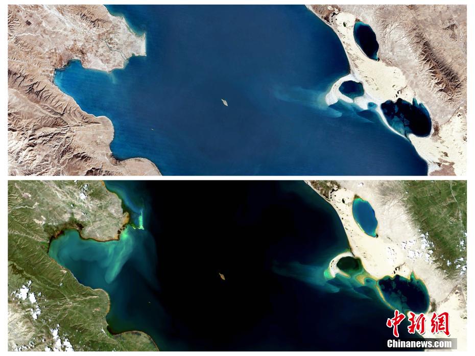 衛星鳥瞰青海:沙化治理明顯,青海湖如藍寶石
