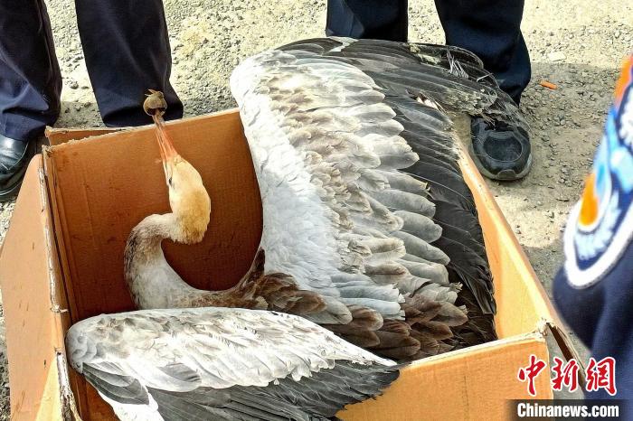圖為(wei) 相關(guan) 部門救助黑頸鶴幼鳥。陳文年 攝