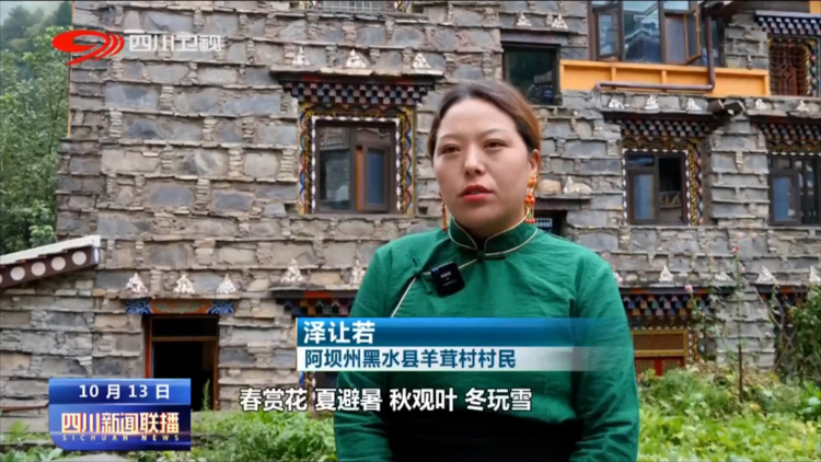 阿壩州黑水縣羊茸村村民 澤讓若:春賞花,夏避暑,秋觀葉,冬玩雪,越來越多的遊客來到我們(men) 這兒(er) ,以前是不敢想的。