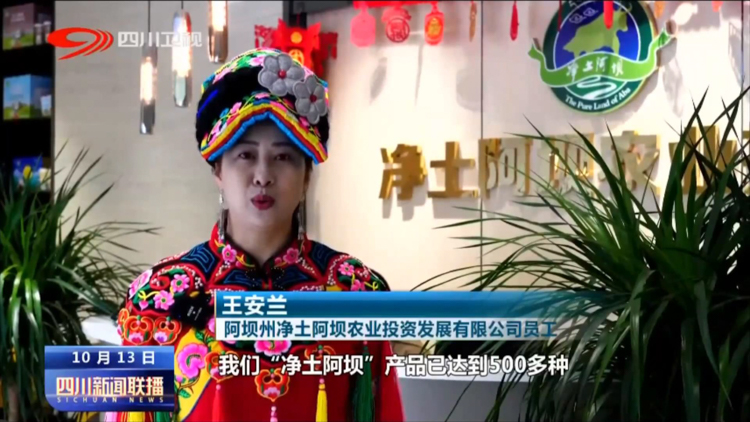 阿壩州淨土阿壩農(nong) 業(ye) 投資發展有限公司員工 王安蘭(lan) :我們(men) 淨土阿壩產(chan) 品已經達到500多種,都實現現了標準化的生產(chan) ,通過電商,基本24小時就可以到達全國各地。