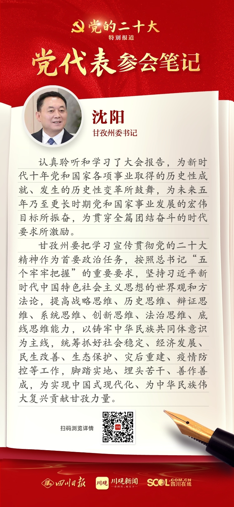 出席盛會(hui) ,來自四川的黨(dang) 代表深感使命光榮、責任重大,大家認真履職,結合報告談認識、談體(ti) 會(hui) 、談打算。川觀新聞特此推出“黨(dang) 代表參會(hui) 筆記”欄目,分享黨(dang) 代表們(men) 的參會(hui) 心得,敬請垂注。