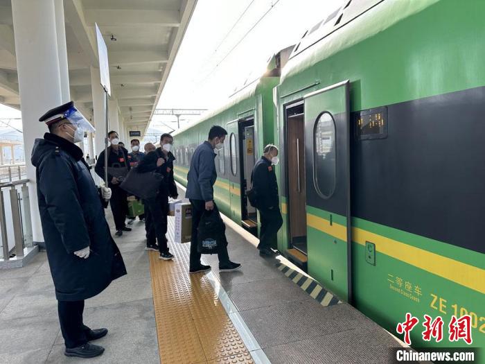 為(wei) 搬遷民眾(zhong) 排隊乘車。蘭(lan) 州鐵路局供圖