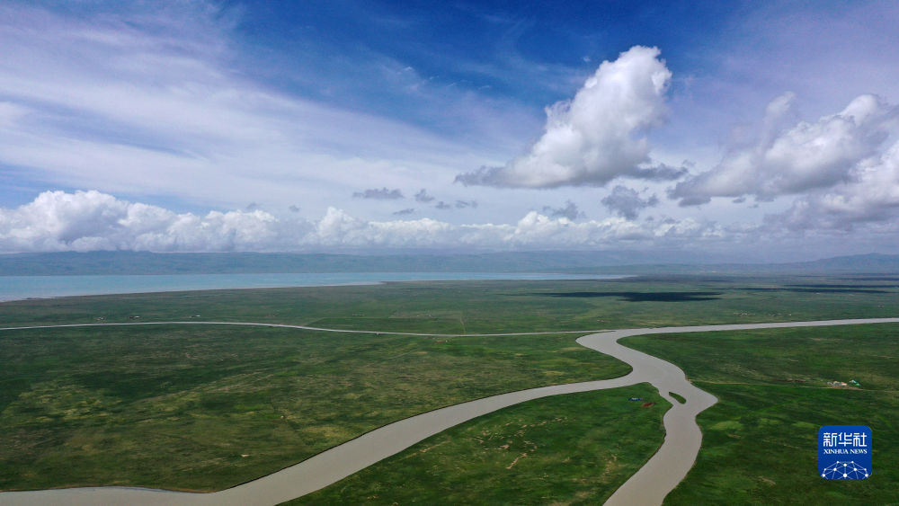 這是青海湖布哈河濕地一景(2020年7月10日攝,無人機照片)。新華社記者 張宏祥 攝