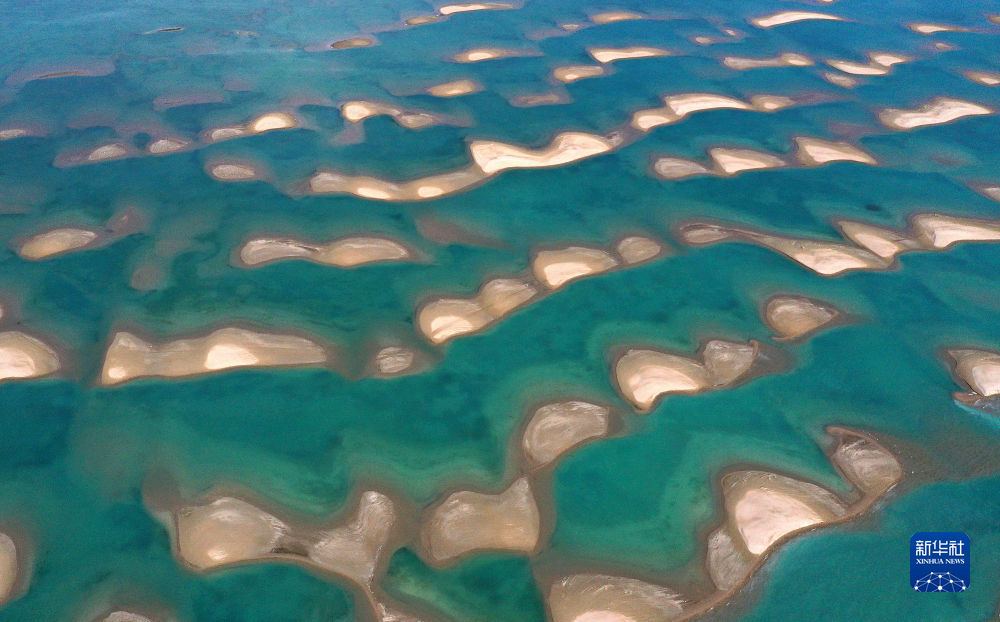 這是青海湖鳥島濕地一景(2020年7月17日攝,無人機照片)。新華社 楊濤 攝