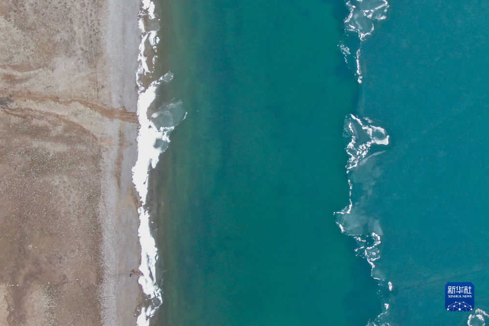 這是2020年4月20日在青海省海南藏族自治州共和縣黑馬河鎮拍攝的青海湖一景(無人機照片)。新華社記者 張龍 攝