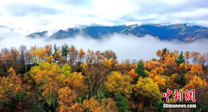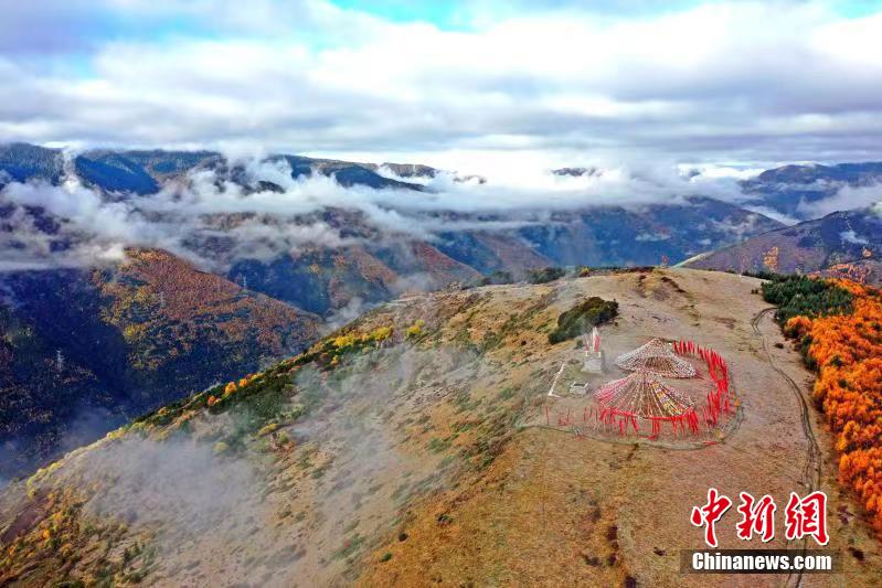 深秋時節,四川馬爾康市馬爾康鎮阿底村賽馬山迎來彩林觀賞的最佳季節。放眼望去,海拔3500米的賽馬山上彩林連綿延伸至茫茫雲(yun) 海,遠方雪山四麵環繞,宛如仙境一般。阿壩州文體(ti) 旅遊局供圖