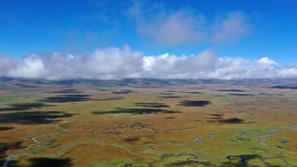 深秋,從(cong) 空中俯瞰平均海拔3500多米的瑪曲濕地,大大小小的湖泊如珍珠般灑落在草原上,上萬(wan) 隻候鳥在這裏安心度過繁殖季,準備飛往南方過冬。