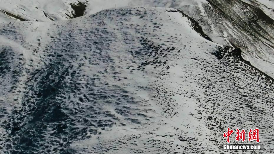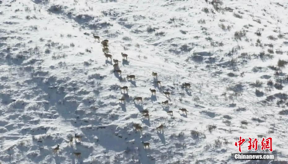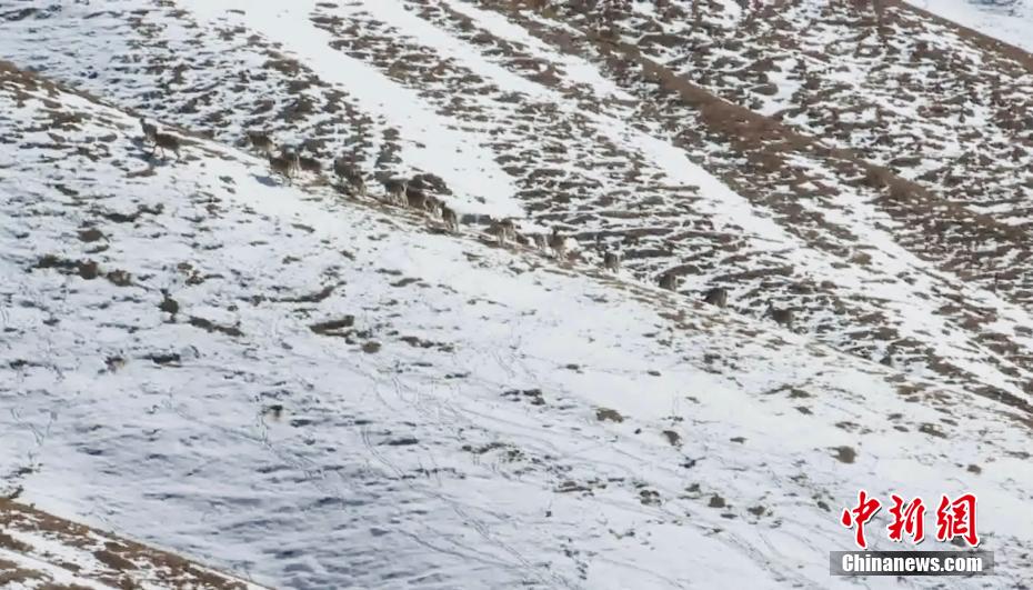 圖為(wei) 岩羊群在雪地裏覓食。 烏(wu) 蘭(lan) 縣融媒體(ti) 中心 供圖