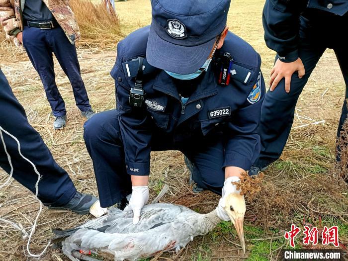 青海門源警方救助國家一級保護動物黑頸鶴