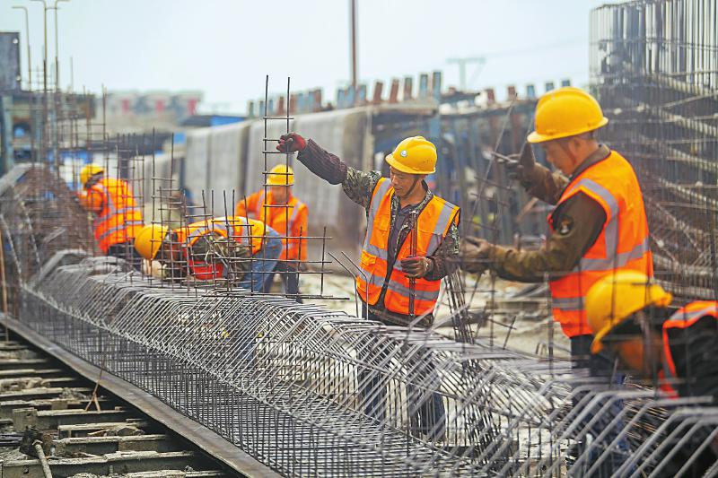 工人正在綁紮施工。成蘭(lan) 鐵路公司供圖