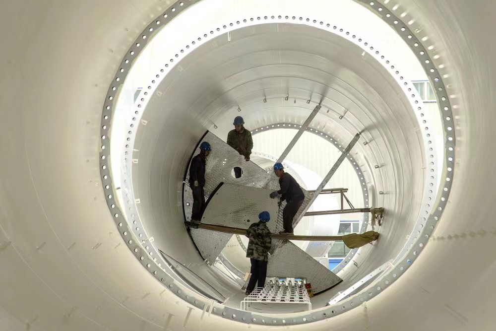 圖為(wei) 工人在加工新生產(chan) 的風電塔筒。(受訪者供圖)