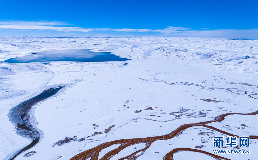 初冬,地處青海省果洛藏族自治州瑪多縣的星星海湖泊群銀裝素裹,封凍的湖麵宛若一顆鑲嵌在廣袤大地的藍寶石,景色壯觀。