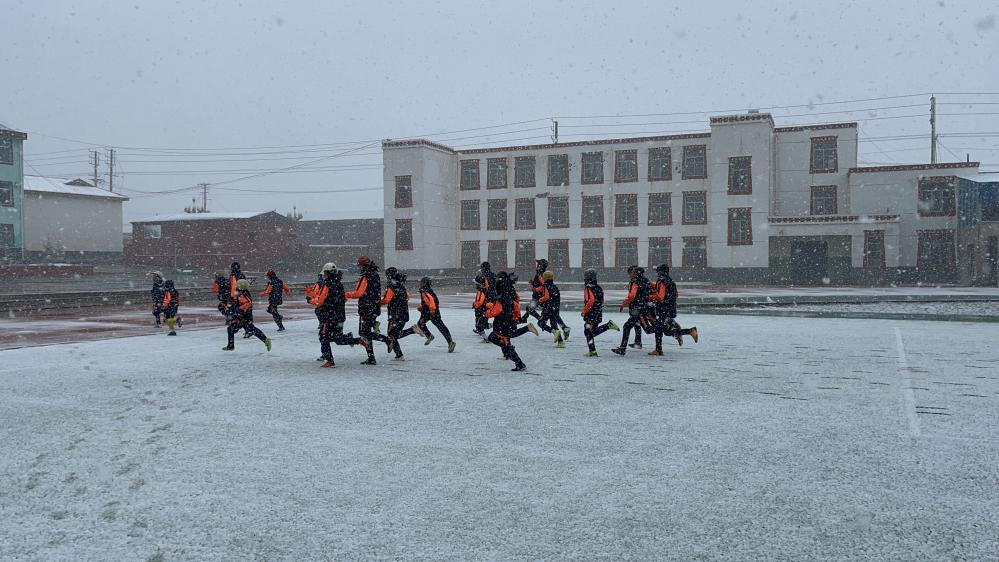 運球、顛球、體(ti) 能訓練……回到家鄉(xiang) 後,一有時間,多果和小夥(huo) 伴們(men) 堅持練球。惡劣的環境並未減少他們(men) 的信心和決(jue) 心,練習(xi) 時常有不少隊員因鏟球等動作滑倒在地,他們(men) 笑著拍拍身上的泥土和冰雪,繼續練習(xi) 。