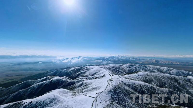 圖為(wei) 青海省海北州祁連縣壯美山川與(yu) 風力發電設施(青海省海北州民宗委供圖)