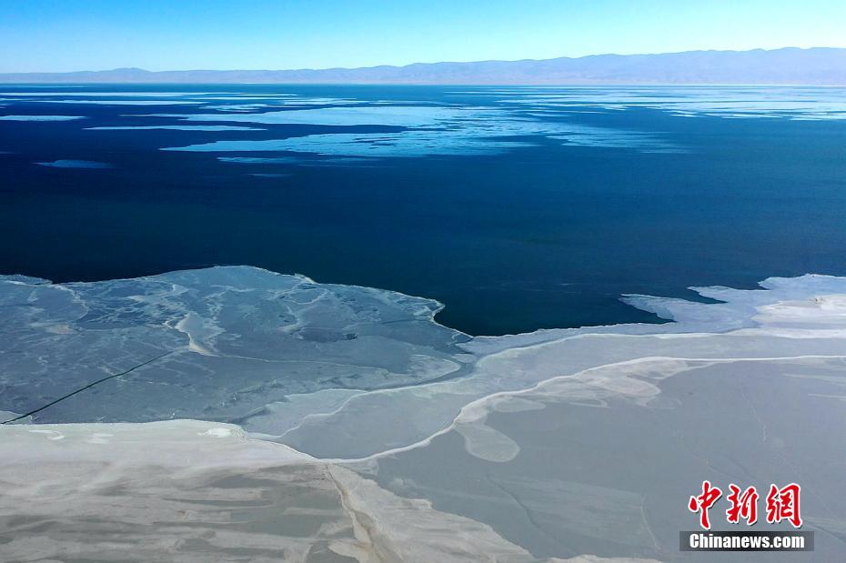 青海湖湖麵封凍如破碎“玉帶”