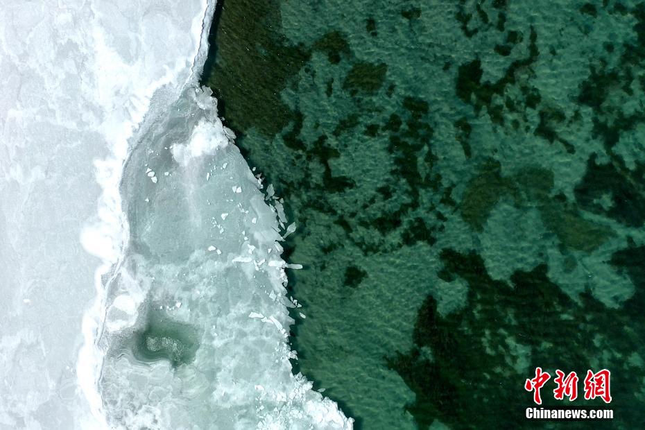 近日,素有“高原藍寶石”之稱的青海湖開始進入冰封期。青海湖水體(ti) 周邊的零星結冰,青海湖西部邊緣、北部湖岸區、鳥島、青海湖斷崖等地出現成片結冰區。航拍畫麵中可以看到湖心範圍尚有大麵積未結冰區域。青海湖是中國最大的內(nei) 陸鹹水湖。冬日裏的青海湖,寧靜而內(nei) 斂。千裏冰封,宛如童話世界。封凍的湖麵如同破碎的“玉帶”,形成獨特的景觀。張世偉(wei) 攝