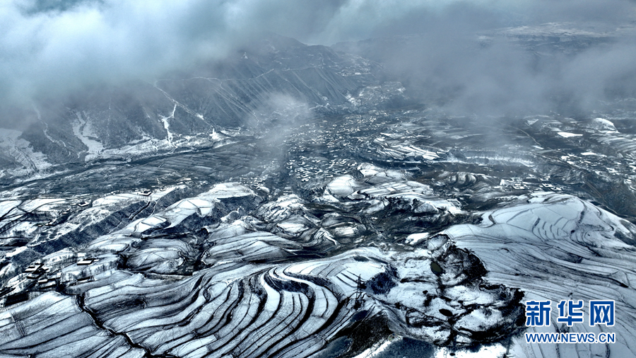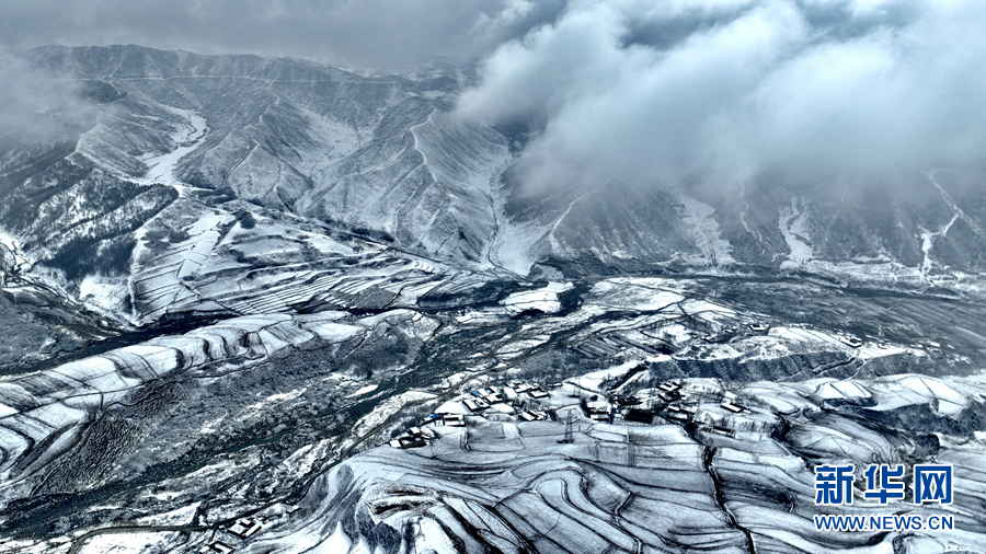 航拍青海省海東(dong) 市化隆回族自治縣雄先藏族鄉(xiang) 雪景。新華網發(李玉峰 攝)