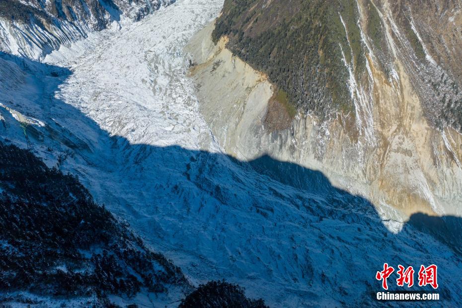 圖為(wei) 航拍震後的海螺溝冰川冰舌段。 劉忠俊 攝