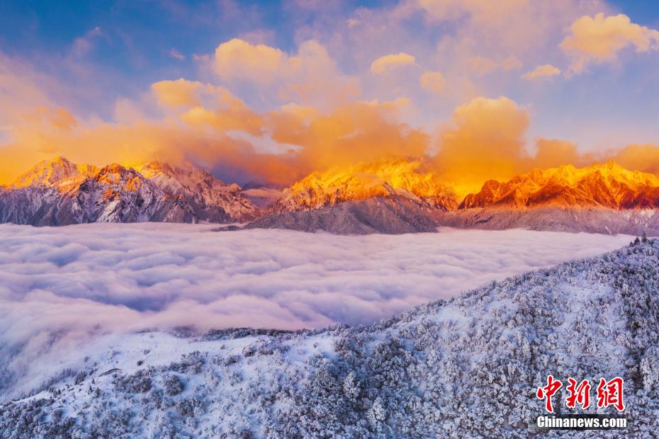 圖為(wei) 在龍華山拍攝的貢嘎東(dong) 坡群山和雲(yun) 海。 李毅 攝